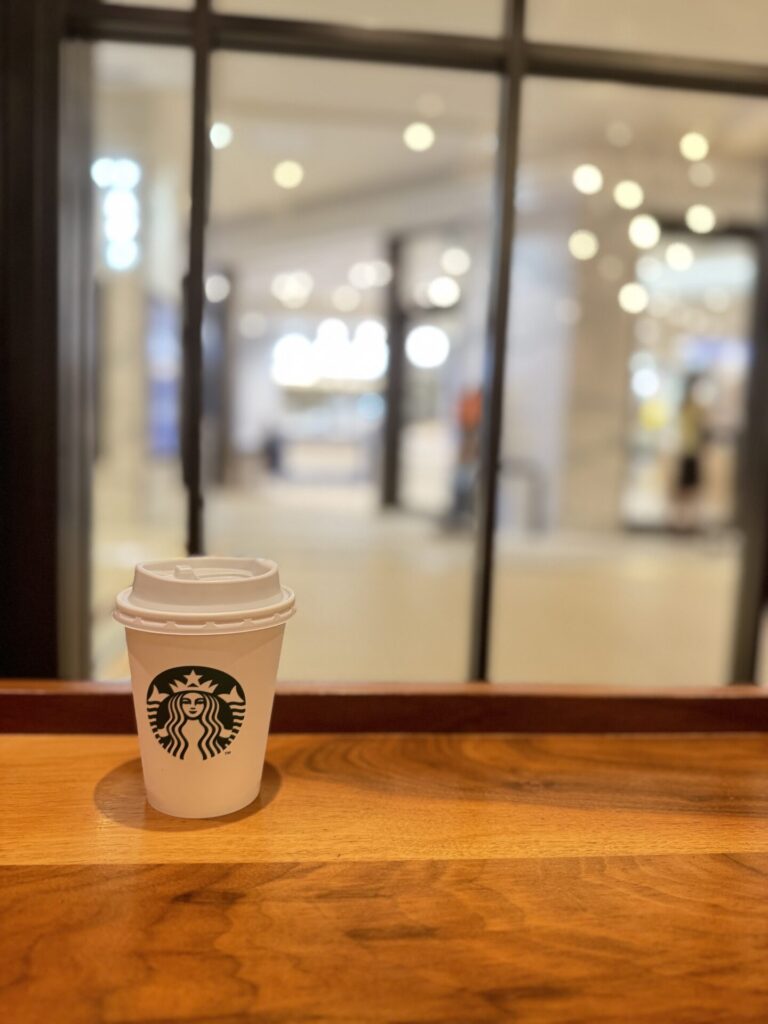 もしこの席の利用を考えている場合は、ドリンクを注文する列に並ぶ前に、まずこの席が空いているかを確認し、荷物を置いて確保することをおすすめします。