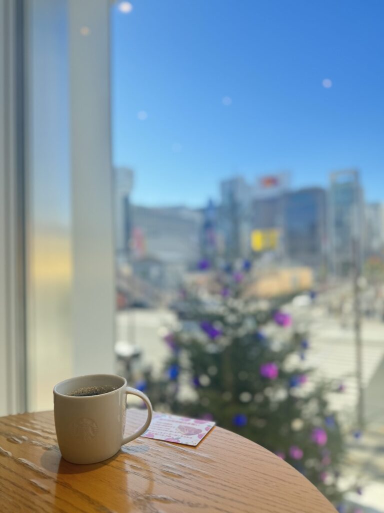- 特徴:席数が多く、スタバよりも回転が速い印象です。窓が大きく開放的で、カウンター席からは駅前のロータリーを見下ろせます。作業スペースも比較的広めに確保されています。